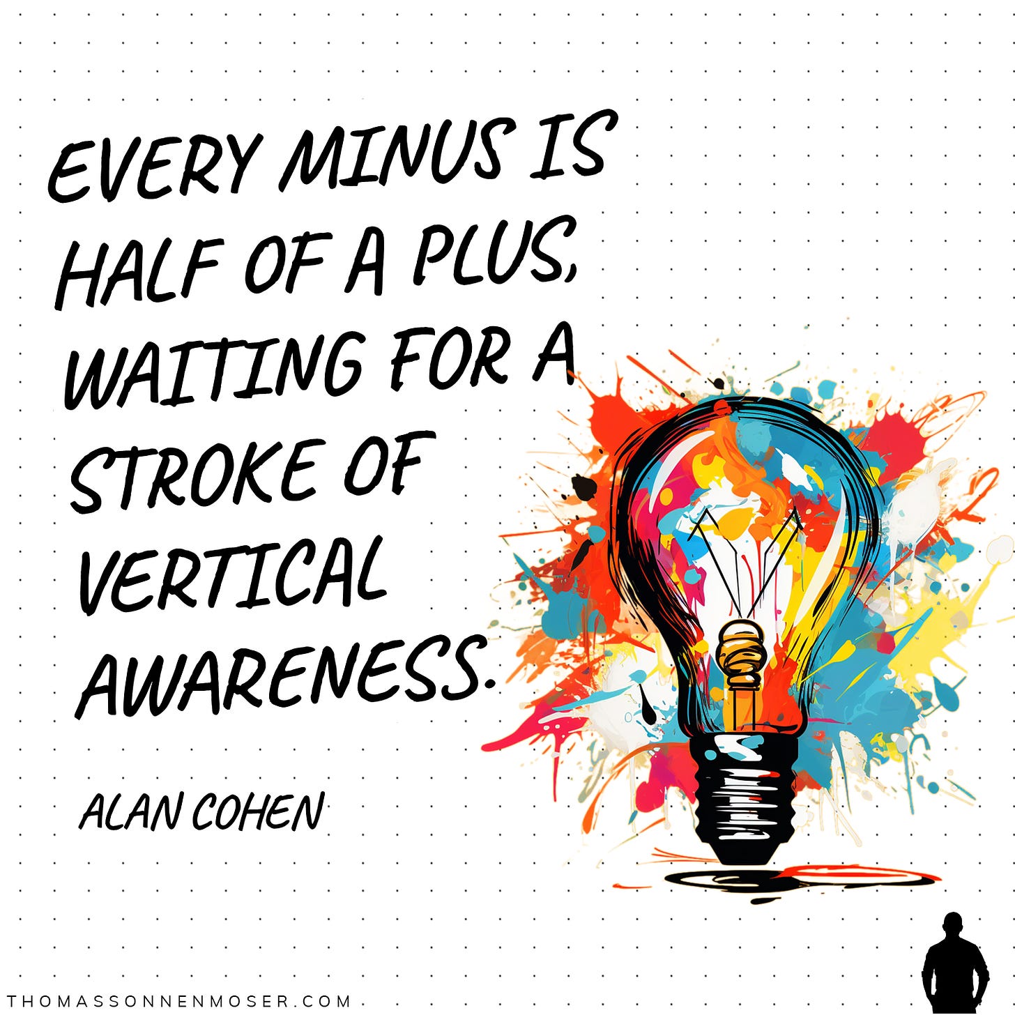 "A minus is half of a plus waiting for a stroke of vertikal awareness".
